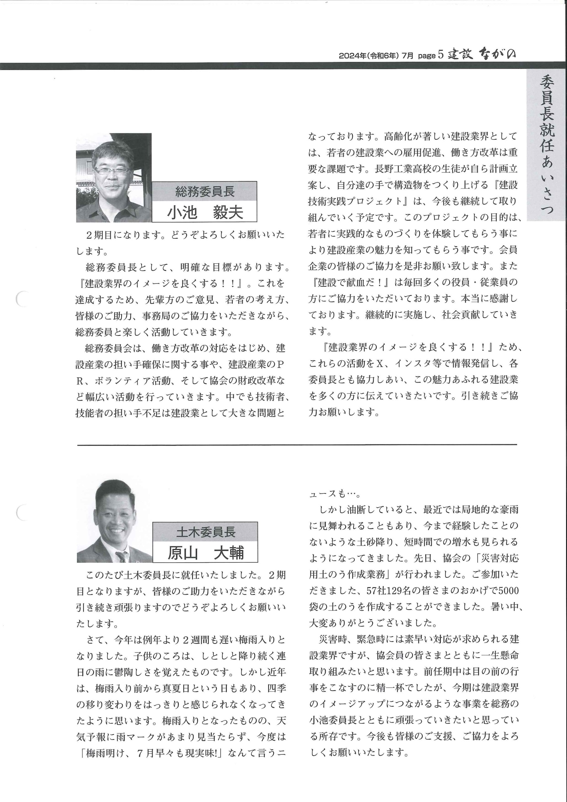 建設ながの「広報誌」に弊社、社長原山 大輔掲載して頂きました。