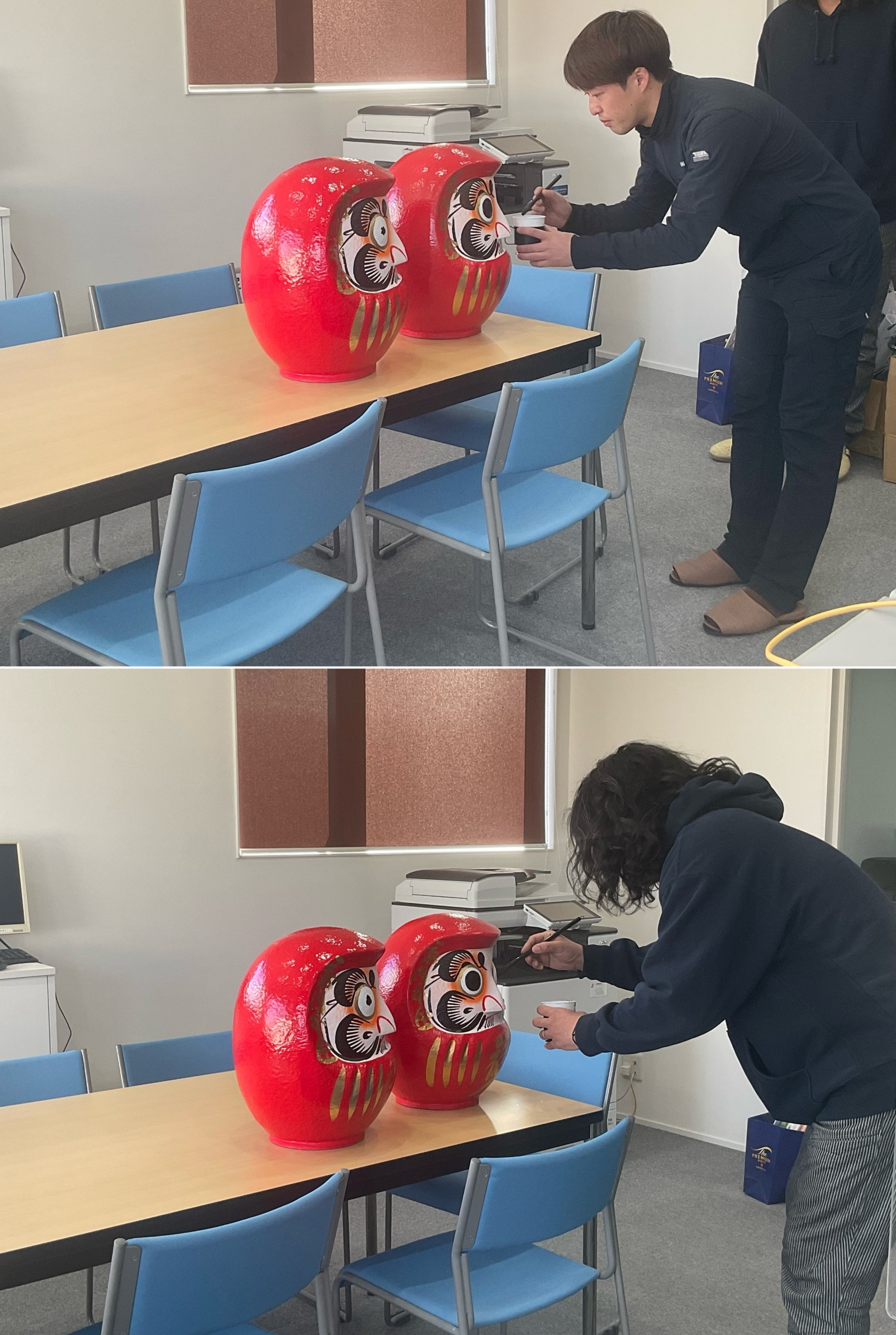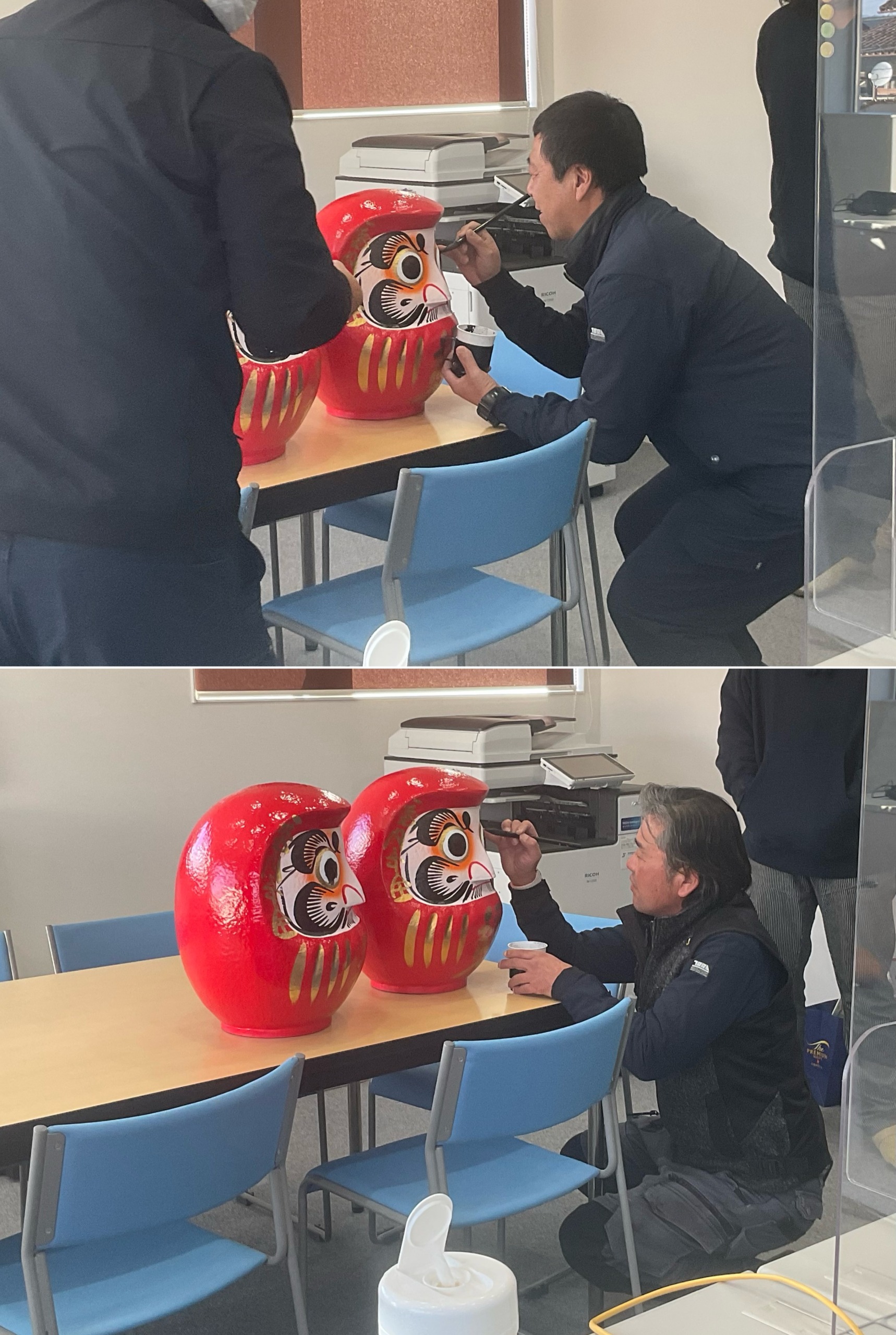 当日は、だるまの目入れを社員で行い安全への願いを込めました。
