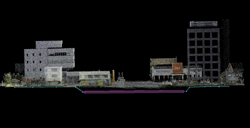 レーザースキャナーから取得された画像(点の集合体)点群データと呼ばれ、