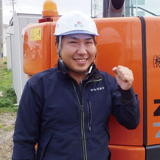 普段使用している道路や水道の工事に携わっています。完成した時の達成感が味わえるのが魅力です。困った時は皆で協力して助け合える雰囲気の会社です。